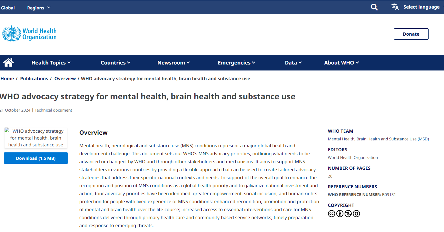 Currently, it appears, the World Health Organization has surveyed various countries and put out a Mental Health Atlas in 2020 with a Global Plan to fold mental health into primary healthcare, with many other initiatives besides, all apparently to ensure “suicide prevention” and “mental health treatment” for all–a dangerous proposition, when every single listed and DSM-named “Mental Health Condition” or “Mental Health Disorder” can be induced, with many having been reported as having been induced by neuroweaponry.