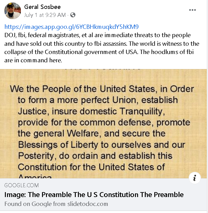 FBI/CIA are Terrorists, Geral Sosbee